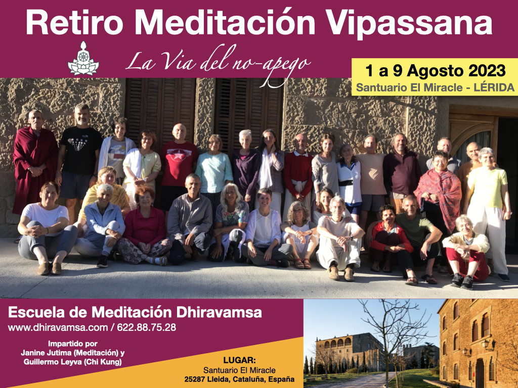 Nos es grato remitiros la convocatoria del Retiro de Meditación Vipassana que guiará Janine Jutima del 4 al 12 de agosto 2026 en el Santuario de la Mare de Déu del Miracle, Riner, Lleida.